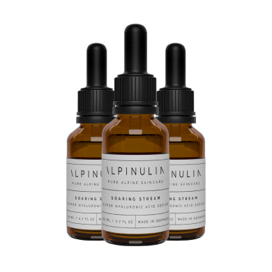 Was Soaring Stream so besonders macht, ist die kraftvolle Synergie aus hoch- und niedermolekularer Hyaluronsäure, dem innovativen Hymagic 4D Komplex und natürlichen Pflanzenextrakten wie Alpenrose und Edelweiss. Diese einzigartige Formel polstert deine Haut von innen auf, versorgt sie intensiv mit Feuchtigkeit und schützt sie gleichzeitig vor äußeren Einflüssen. Sie hilft, feine Linien zu reduzieren, die Hautbarriere zu stärken und den Teint sichtbar zu verfeinern – für ein glatteres, strahlenderes Hautbild.